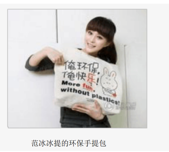 繁出现这种棉布质地的环保购物袋,很多演艺时尚明星也身体力行地背上它。